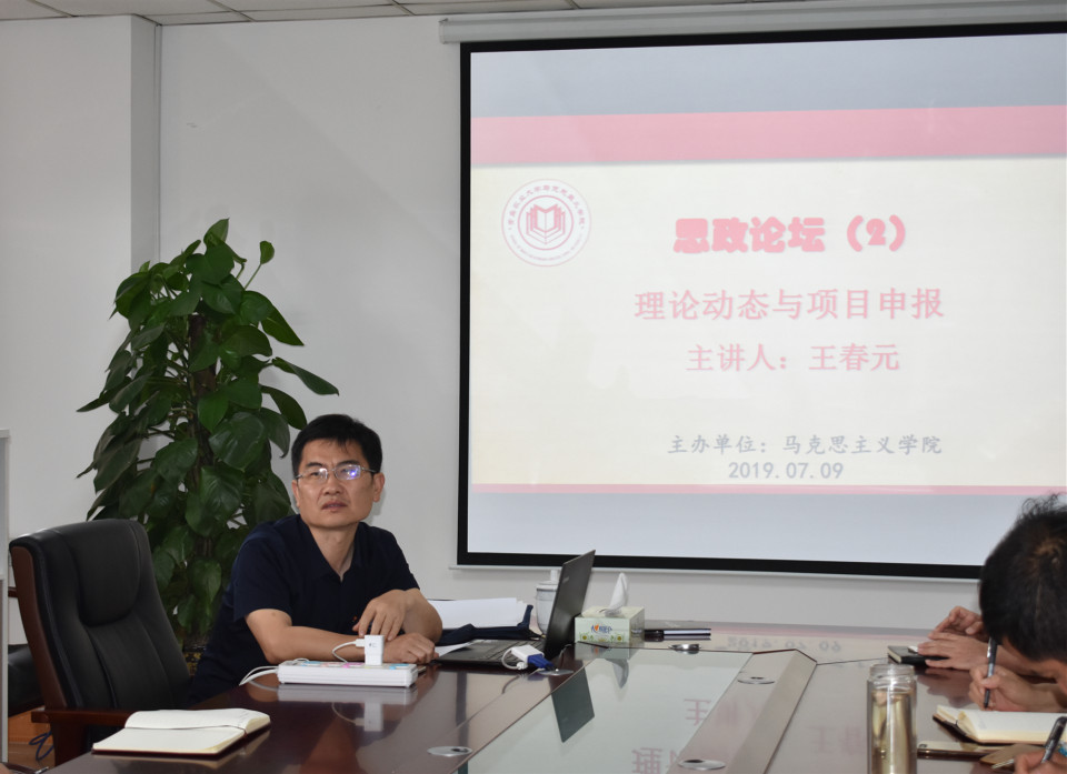 7月9日下午,青岛市委宣传部理论处处长、社科规划办主任王春元博士做客思政论坛,围绕着理论动态与项目申报这一主题,与z6mg人生就是博全体教师进行了面对面的座谈。